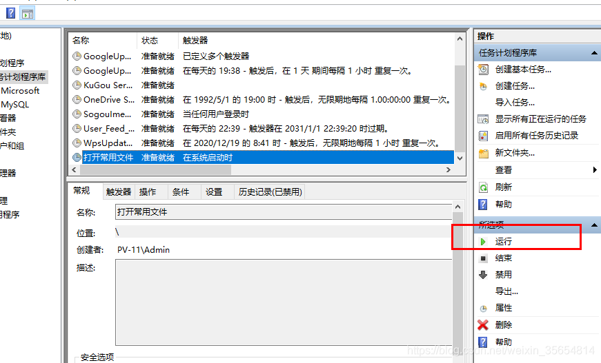 最后可以选中我们创建好的那条任务,点击右边的【运行】来检查创建的任务计划是否有效。点击运行后,就会打开那三个 TXT 文件和 eclipse